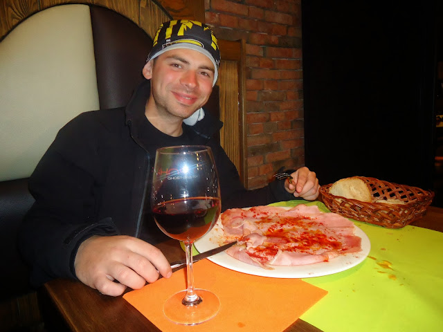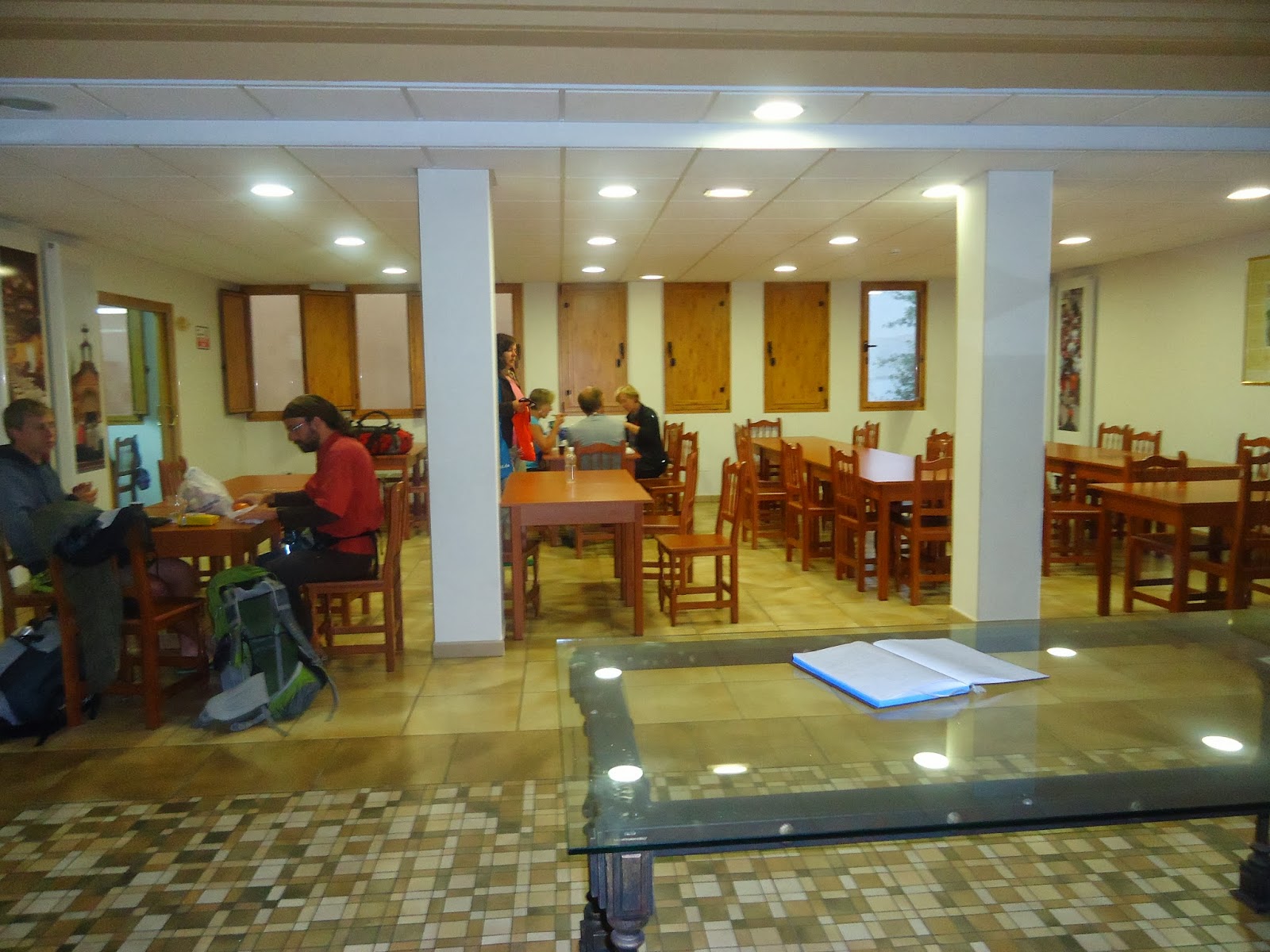 Problema cea mai mare cu spaniolii este că, nu știu nici o limbă străină. Pe lângă asta, la ei efectiv nu poți să mănânci nimic între 16:00 si 19:00, de la 13:00 la 15:00 totul este închis, mai puțin restaurantele, unde se servește meniul, după care se închid restaurantele și nu mai ai nici o posibilitate să mănânci până la 19:00, când începe meniul de cină. Cred că și McDonalds-ul, dacă aș fi văzut unul, închide la ei. Astfel că după ce ne-am plimbat până , am intrat în restaurant cerând meniul. Însă surpriză, chelnărița nu știa engleză și nici un meniu scris nu era disponibil, lucru foarte frecvent la ei. Astfel că a chemat un tip de acolo care o rupea în engleză, și când spun o rupea, sunt foarte îngăduitor. Cu ajutorul interjecțiilor și limba gimnastică, am reușit să ne înțelegem. Nu exagerez când spun că, am refuzat un „beee” si am cerut un „grunz grunz”! Spre surprinderea noastră în loc de cotlet de porc am primit, jambon pe un pat de cartofi fierți cu multă paprica și ulei de măsline. Experiența culinară de neuitat, și de amintit în „to do list”, învățat limba spaniolă. Ce trebuie însă să remarc este că sunt extrem de binevoitori, adică, atunci când nu au știut să ne explice ce este desertul, ne-au adus toate variantele de desert în miniatură pe o farfurie ca să „vedem” ce comandăm. Eu știu că am mâncat jambon de mi-au sărit capacele și am terminat cu o brânză telemea, cu miere, nuci, stafide și alune mărunțite. Pentru efort nota zece, pentru meniu, mai puțin. Ca să ne scoatem pârleala, am topit sticla de vin roșu demisec, oferită fără excepție la orice masă, împreună cu două coșuri de pâine – am cerut refill. Astfel după o masă mai mult sau mai puțin reușită ne-am întors la mănăstire, în speranța unui somn lung și binemeritat.