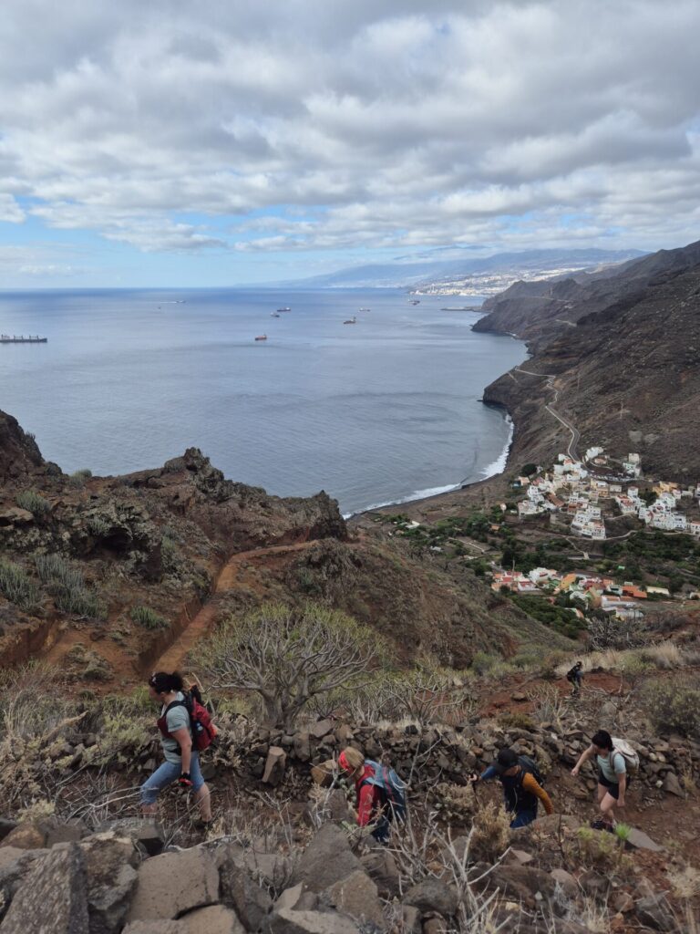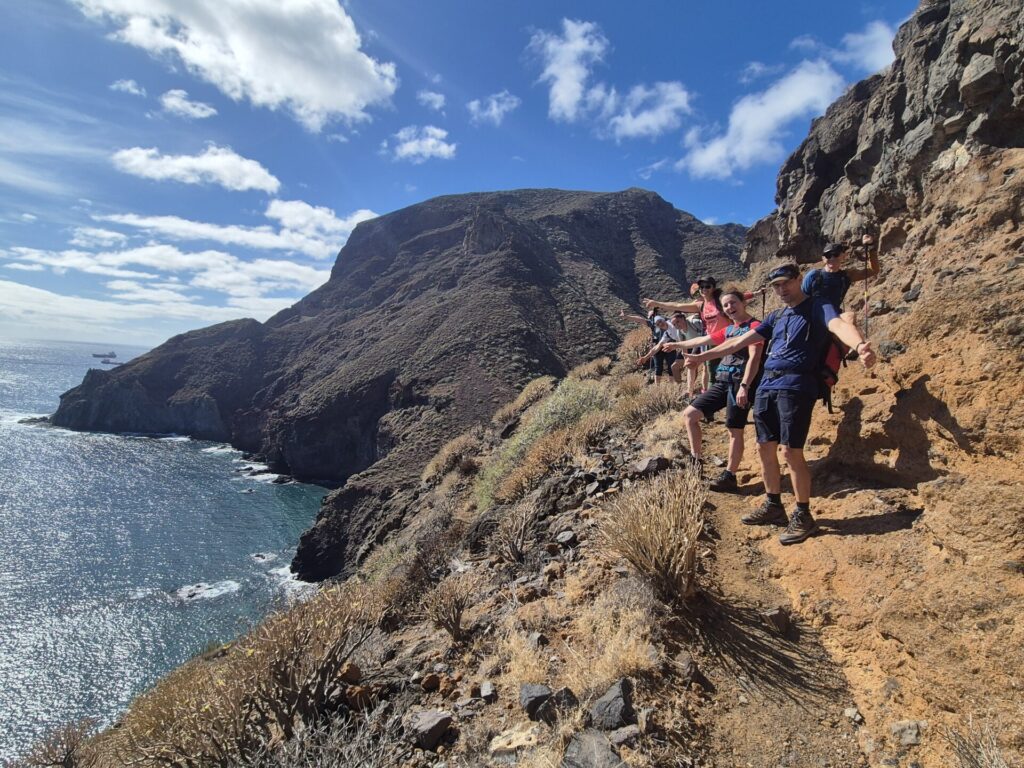 Am pornit pe poteci suspendate, peste stânci montane, ce ne-au lăsat fetele să se bucure de toate forile și cactușii posibili. Părerea a fost unanimă că :”nu mă așteptam la atâta culoare pe o insulă așa caldă”.