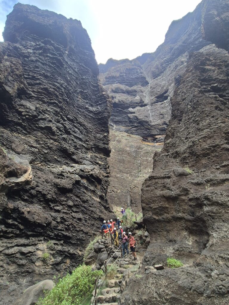 Una din sutele de atracții ale insulei este canionul Masca, care coboară de la satul montan cu acelaș nume până la ocean și durează cam 2-3 ore. Dacă până acum am fost pe lună și prin junglă, acum parcă suntem sub pământ în romanul lui Jules Verne și coborâm spre necunoscut, printre stânci de sute metri. Nu ajungem în centrul pământului ci la ocean de unde suntem preluați cu barca și duși la Los Gigantes cu așa o viteză că i s-a zbârlit barba groasă a căpitanului. Probabil se grăbea la o bere și el, că eram ”ultima tură”. Los Gigantes este un loc deosebit cu formațiuni de stâncă, care păzesc parcă sfârșitul pământului,  cu înălțimi sale ce ating între 500m și 800m.