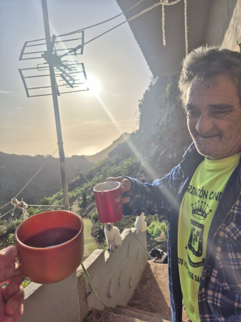 A doua zi am vrut neapărat să vizităm partea de nord a insului. Aici mi se pare că e cel mai frumos peisaj din toată insula, iar când pleci aproape de acasă și străbați peninsula, de la sud la nord pe poteci puțin cunoscute, se multiplică satisfacția și bucuria trăirilor. Am trecut prin sate pustii de munte. L-am vizitat pe Santiago, un pustnic ce trăiește de 6 ani într-o peșteră cu cele 4 pisic și cățelușa sa. Are o grădină de invidiat, cu cartofi și roșii și palmier cu banane și lămiâ.
