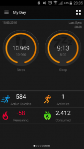 O data conectat insa, sincronizarea aplicatiilor functioneaza perfect. Incarca datele antrenamentelor pe Strava dupa ce te lasa sa confirmi si eventual sa adaugi poze de pe telefon. Adauga numarul de calorii pe MyFitnessPal in cazul incare ti un jurnal de nutritie si iti ajusteaza valorile in consecinta. Cireasa de pe tort este, aplicatia nativa Garmin, care dupa sincronizare iti pune la dispozitie rapoarte complexe legate de puls, viteza, numarul de ore dormit, pasii facuti si caloriile consumate in cursul zilei.
