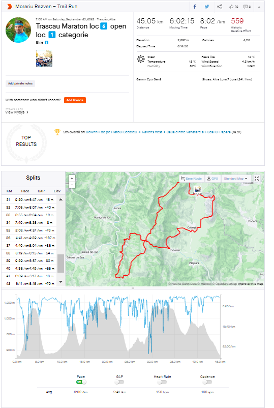 Cel mai mare câștig a fost că mi-am confirmat importanța unui plan bun și diferența pe care o poate face întro cursă. Cu toate că vremea a fost foarte caldă și s-au adunat aproape 3000 de metri diferență de nivel în 45km , m-am simțit bine de la un capăt la altul și asta este ce-a mai mare recompensă pentru mine.